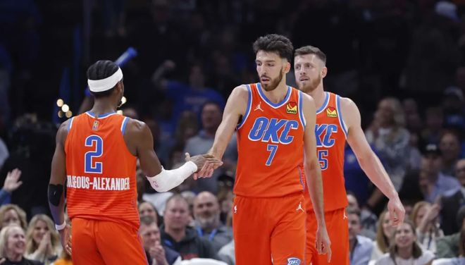 反观雷霆本赛季以“炸裂”的姿态开启新赛季——11胜1负的战绩不仅创下队史同期最佳纪录,更力压掘金、火箭等强队暂居西部第一,成为联盟唯一一支胜率超过90%的球队。而上一场126-102大胜勇士的比赛,更是将他们的统治力展现得淋漓尽致。那场对决中,雷霆从首节便掌控主动权,最多时领先勇士36分,“攻防双爆”的表现让勇士毫无还手之力。核心亚历山大延续了上赛季的巨星表现,全场拿下28分5篮板11助攻3抢断的准三双数据,成为联盟最难以限制的突破手之一;更令人惊喜的是霍姆格伦的进化,这位年轻内线全场9投全中,以100%的命中率拿下23分11篮板的两双数据,既能在篮下完成护框,也能拉到外线命中三分,完美适配现代篮球的内线需求。